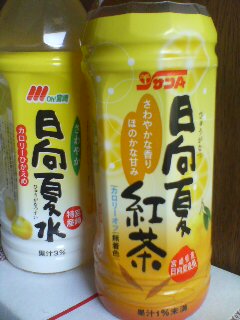 これが宮崎県の農協の商品、日向夏水と日向夏紅茶です。